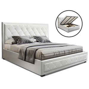 Artiss TIYO King Size Gas Lift Bed Frame Base With Storage Mattress White Leather
