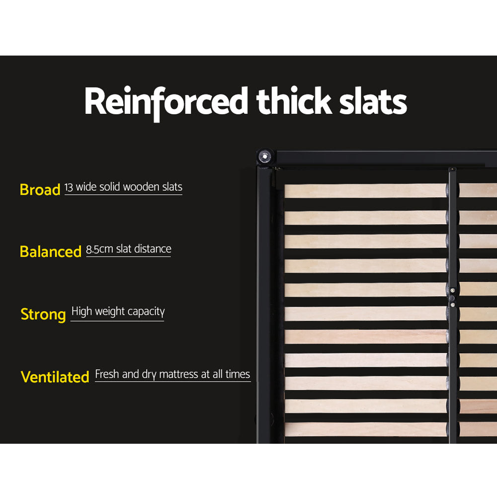 Our Toki Gas-Lift Bed Frame combines exquisite style with great storage practicality. The frame is built with reinforced steel construction while the wooden arched slat frame helps to distribute weight evenly across the framework. Heavy-duty connectors are used throughout the frame to increase its durability and reliability with long -term robust use. And for an elegant finish, the bed frame is padded with high-density foam and upholstered with premium linen fabric. Best of all, the bed frame comes with a gas-lift storage system where you will find acres of space underneath the slatted frame to store all your bedroom and home essentials. And if so desired, the bed frame can be matched with our complementary bed head for a complete look. The bed frame is designed to fit standard Australian-sized mattress.